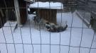 Tara ja Kamu seuramiehenä luun kimpussa...Melkeinpä naisenergialla koottu tarha. 8.12.-13.