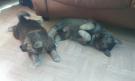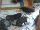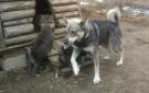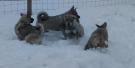 Noin viikko sitten reilun 3 kk ikäiset pennut, Miina ja veljekset Manu ja Masi sekä Iines nujuamassa koirakentällä. 15.4.-18.