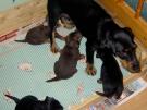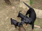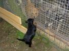 |  Tarhassa uusi maailma. Nippu oli turhan leikkisällä päällä; Kuritti pentuja, revitteli ja kuittaili naapureille... Pennut 5 vkoa. 17.9.-08 |